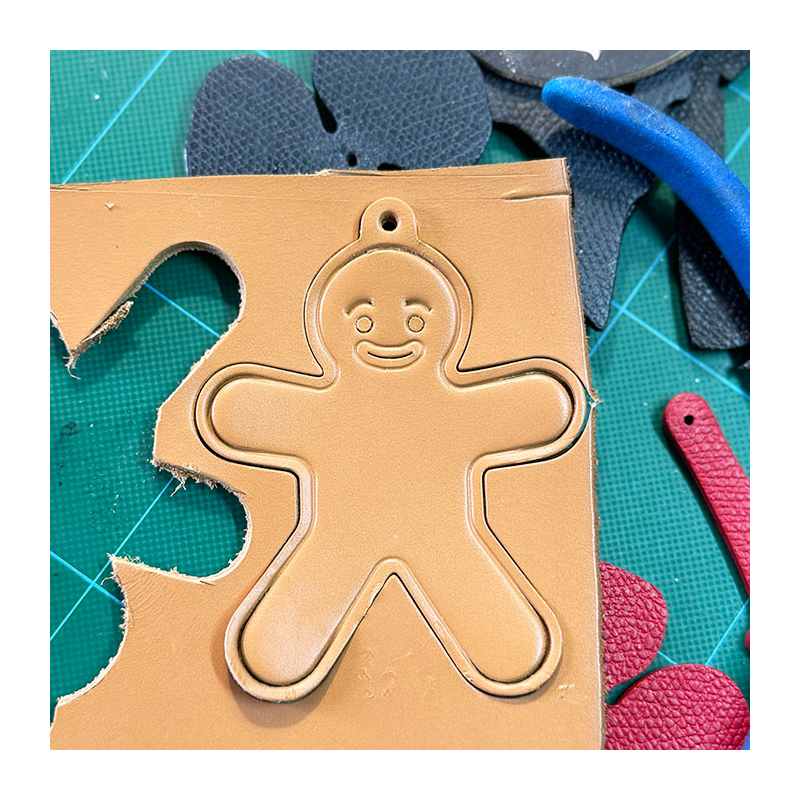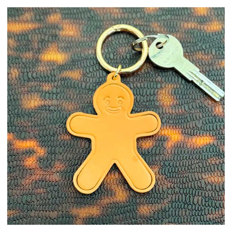 Bonhomme Ginger is an upcycled leather bag charm handcrafted in our Paris atelier. Its playful “gingerbread man” silhouette brings a warm, festive accent to any bag, pouch or keyring. Each piece is embossed and finished with a gold metal ring.