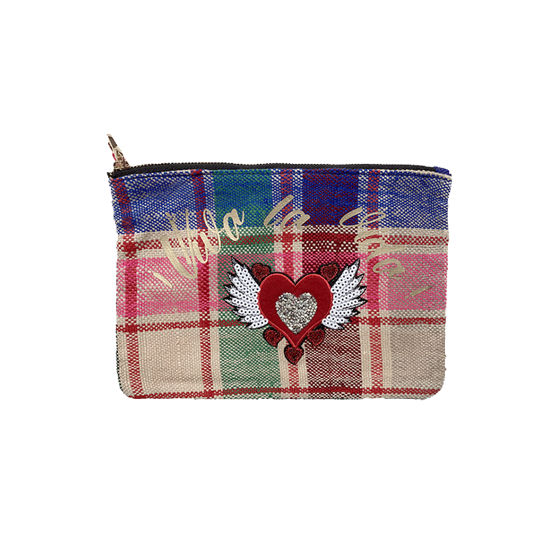Our "Viva la Vida" make up bags are perfect gift ideas. Made from recycled Berber plaids, they are each unique and eco-responsible. They will hold your essentials like your keys, your phone and your lipstick! To be worn during the day or in the evening. This format is a size M.