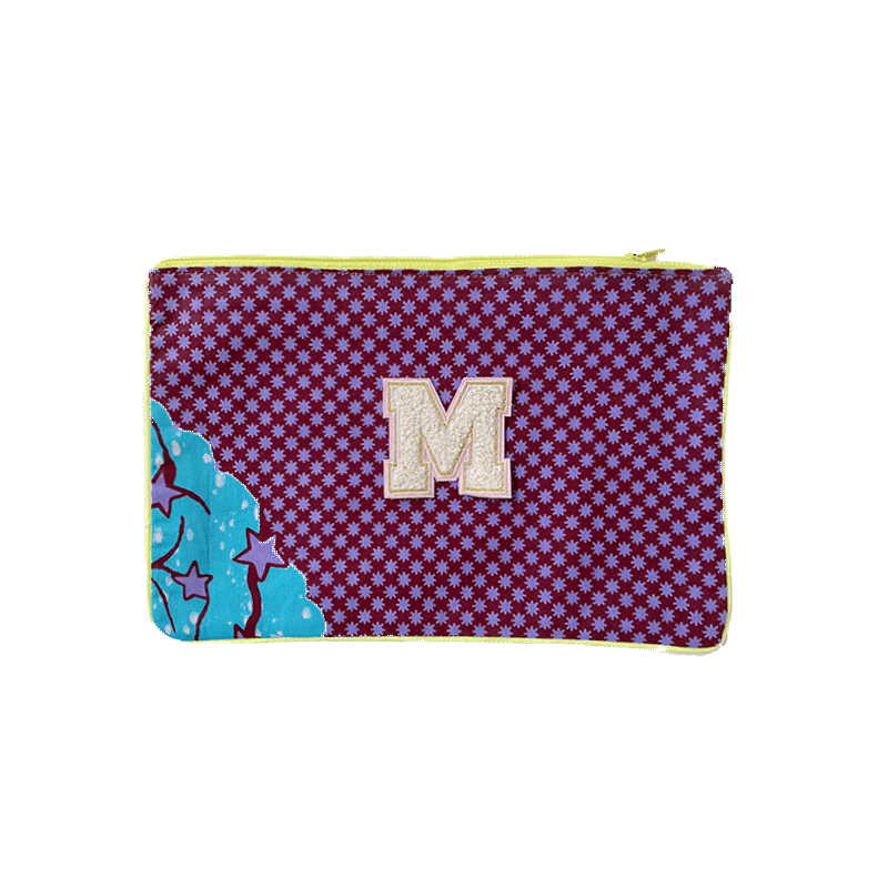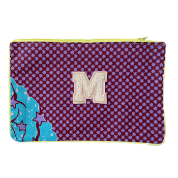 A purple cotton pencil case that you can personalise by choosing the initials or bouclette letters that will customise it. You choose the letters you want and we'll add them for you. So your make-up bag will be unique. A great idea for a customised gift!