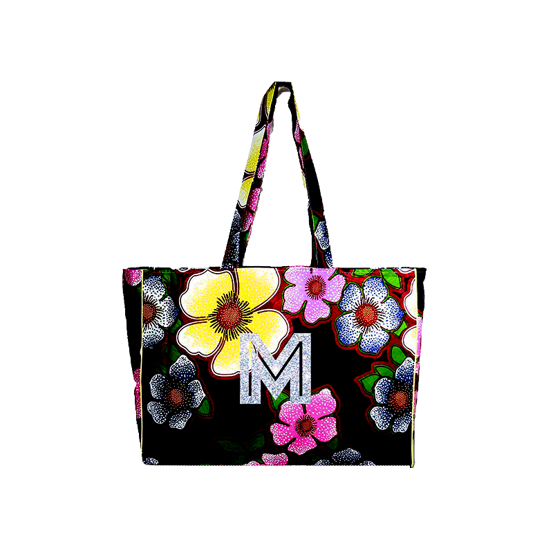 You want a cotton maxi bag personalized with your initials or your monogram? We will personalize it for you in our workshop in Paris. You choose the writing you prefer and the color and your wax printed cotton bag will become a unique bag.
