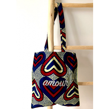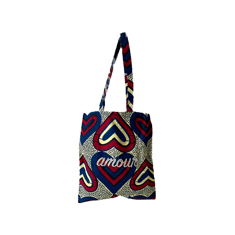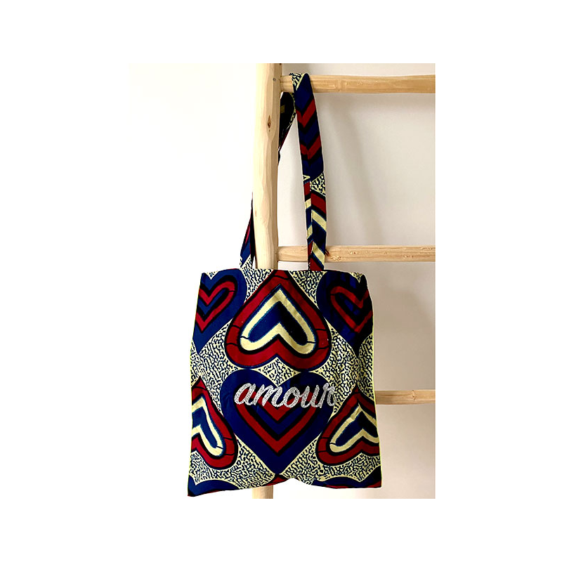 Our must-have tote bag in wax cotton features beautiful hearts on its navy and red print. The bag features a glitter-printed message, adding a bold, sparkling touch to the design. Lovingly crafted, this tote bag offers handmade quality and sophisticated personalisation.