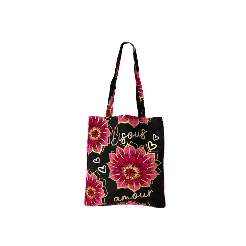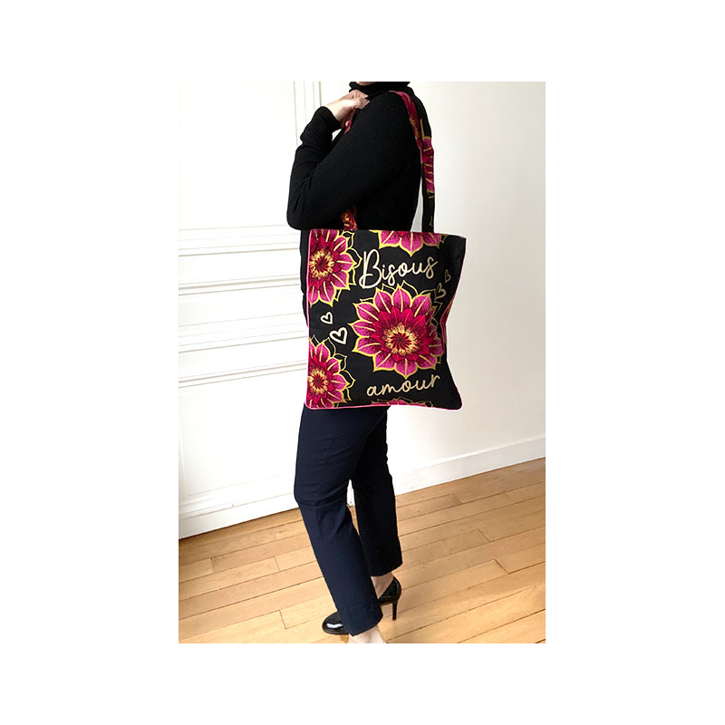 Our personalized Tote bag Bisous in wax cotton is an adorable handbag. It's a perfect size to follow you every day and its original print makes it as stylish as you are!
