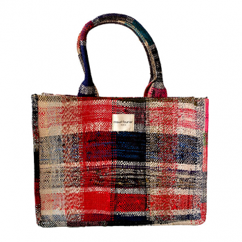 Our Sunshine tote bag will hold your essentials and follow you everywhere! An eco-responsible handbag because it is made from a blanket that has already had a life and that we transform into a tote bag. The Berber plaids are first mottled by our designer, then cleaned before being recycled into bags and kits by a cooperative of artisans in Morocco. We work with them in a fair way because it is part of our values.