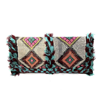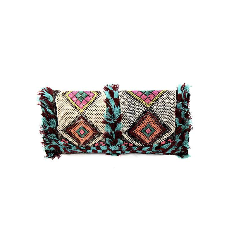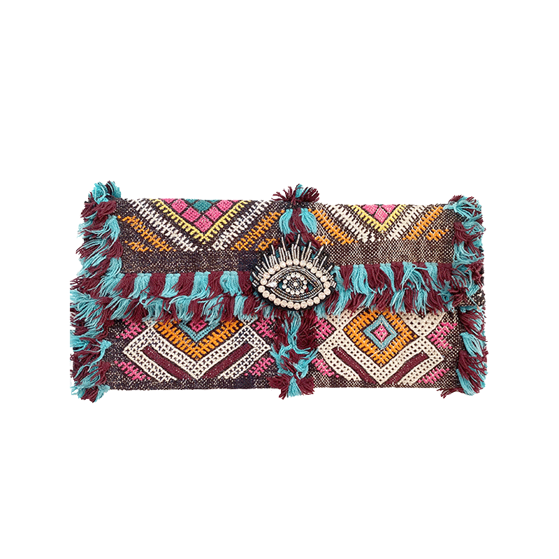 Our clutch bag is part of the slow fashion movement, which is very important to us. It's eco-responsible because it's made from a vintage Berber Kilim cushion, which we're giving a second life. We buy the Kilim cushions in Morocco, then the bags are assembled in our workshop in Marrakech by an association of Moroccan women with disabilities since 2017. So this is also a bag for solidarity, because all these values are important to us.