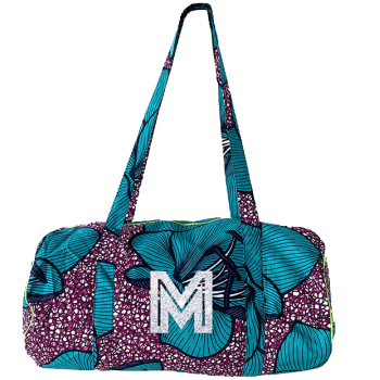 Our wax-printed cotton duffel bag is the epitome of simple, functional elegance. Carefully crafted, it features discreet fluorescent piping and glittery initials personalised in our Paris workshop. A well-balanced accessory, perfect for those looking for understated elegance.