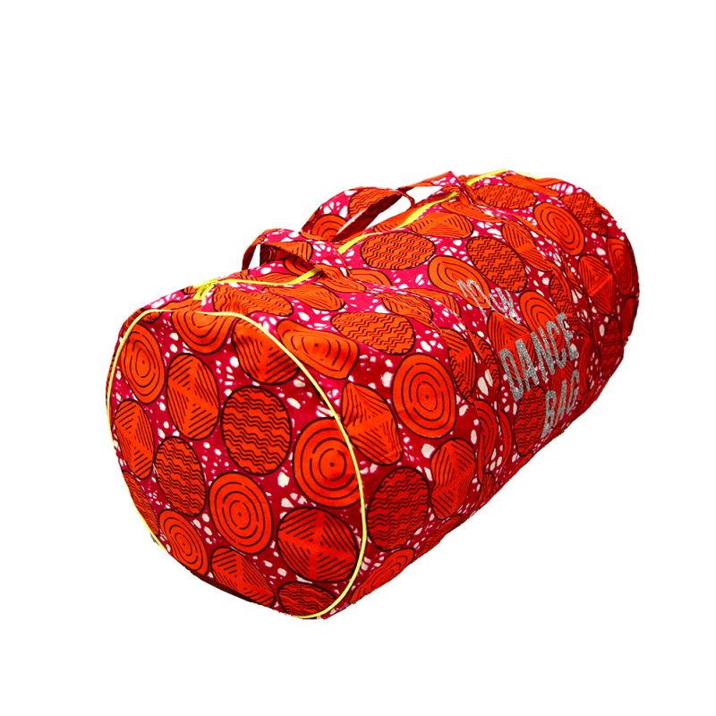 Our red wax-printed cotton duffel bag is the epitome of simple, functional elegance. Carefully crafted, it features discreet fluorescent piping and glittery initials personalised in our Paris workshop. A well-balanced accessory, perfect for those looking for understated elegance.