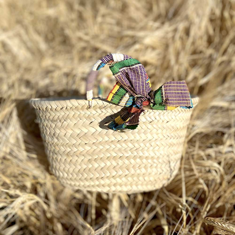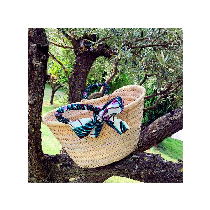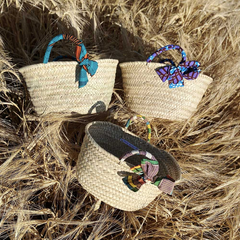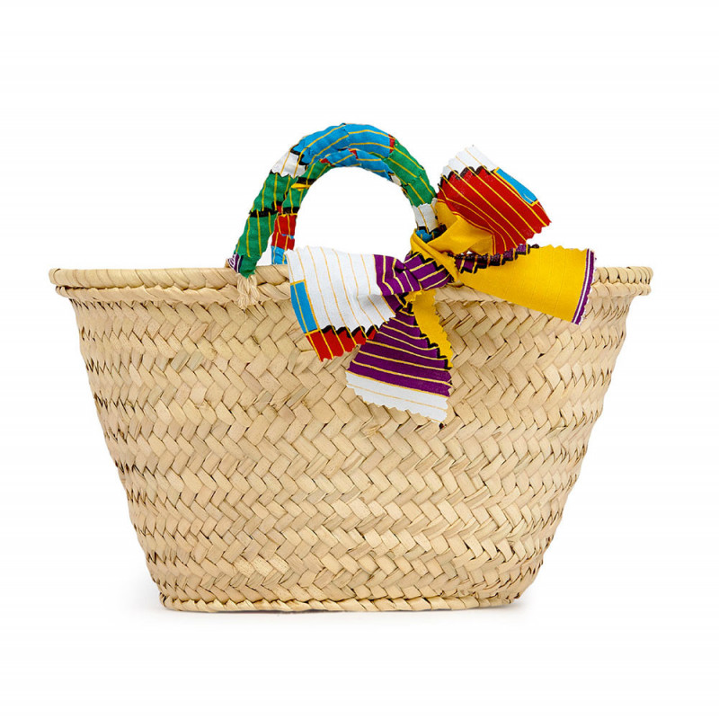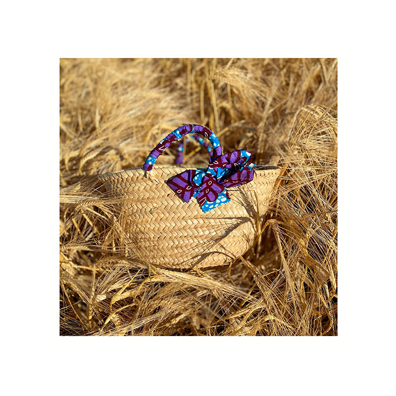 An ideal basket for going out on the beach that you can personalize by choosing the color of its handles covered in wax print cotton!