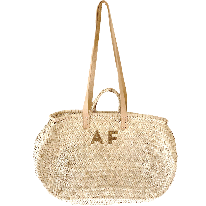 The Bonifacio basket is an oval format beach basket to personalize by choosing the initials that will be painted by hand.
