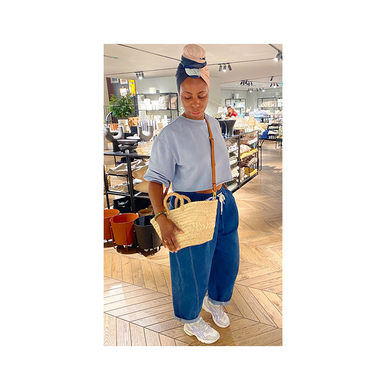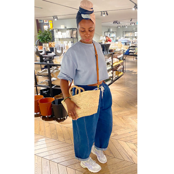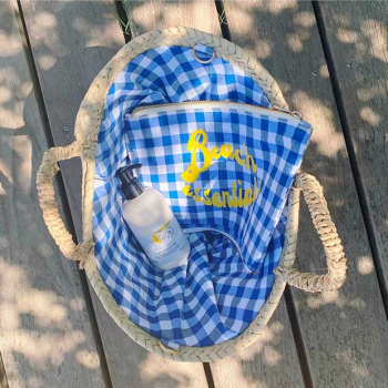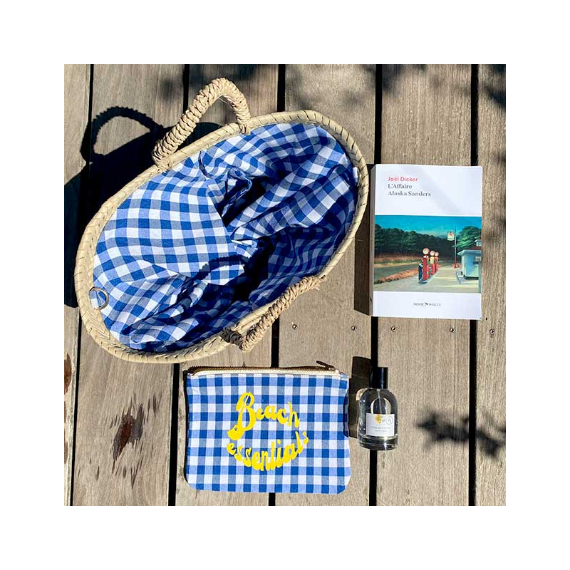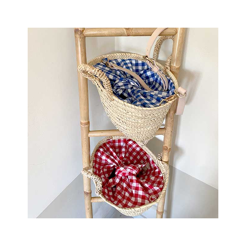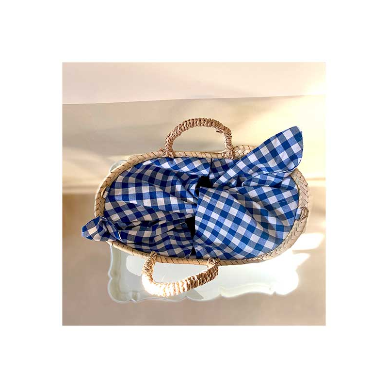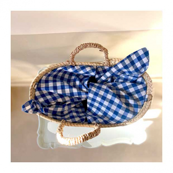 The Brigitte basket is a small basket like a handbag. Its blue gingham cotton lining closes with "rabbit ears". And its removable shoulder strap that allows a cross-carry is so practical!