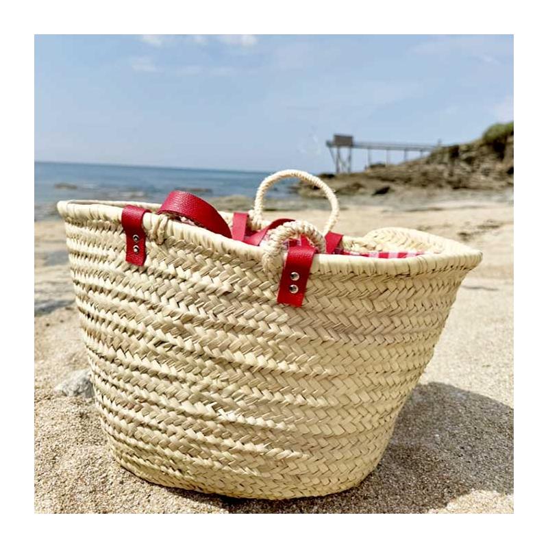 The Alma red basket is a seductive, elegant piece, enhanced by a heart that hangs like a lucky charm. Customized in our workshop in the heart of Paris, its handles are cut from high-quality, deep-red grained leather. The red gingham cotton lining gives it that “dolce vita” touch we love.