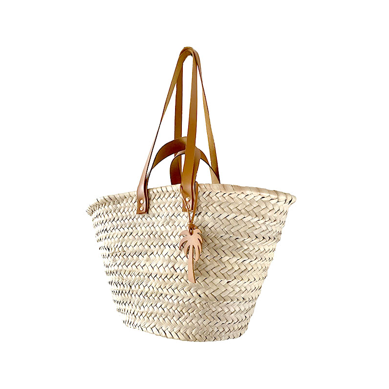 Our Louise basket with its camel leather Palmier gripper is chic and elegant. Personalised in our workshop in the heart of Paris, its handles have been cut from beautiful smooth leather. It's the perfect size to hold your essentials and keep you company every day.