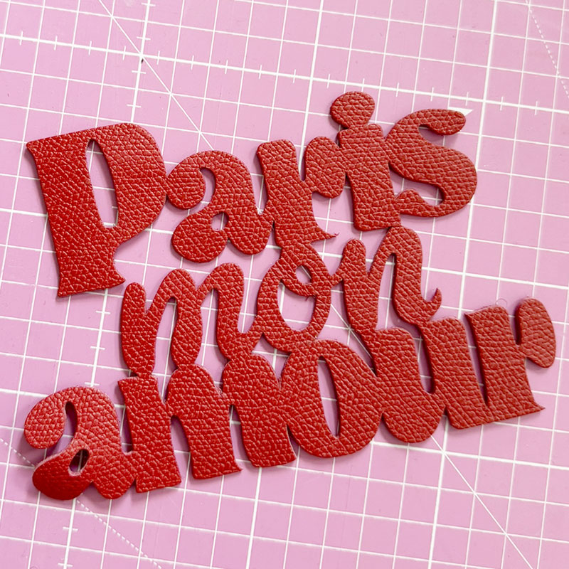 The Paris Mon Amour basket is a truly unique piece, customized by hand in our Parisian studio with a delicately cut grained calf leather motif. The leather is sourced from surplus materials from French luxury fashion houses, making this creation both elegant and eco-conscious.