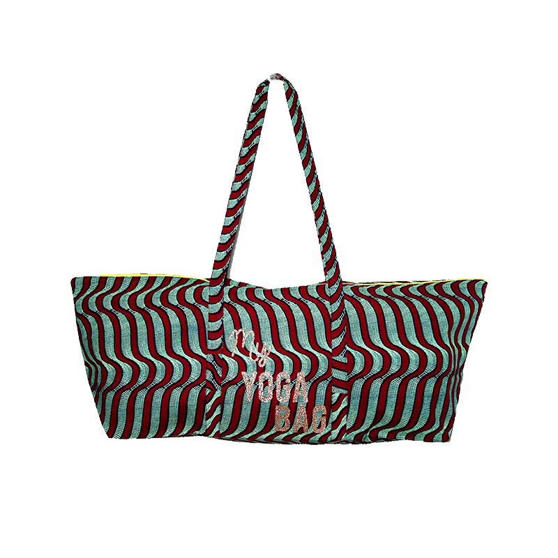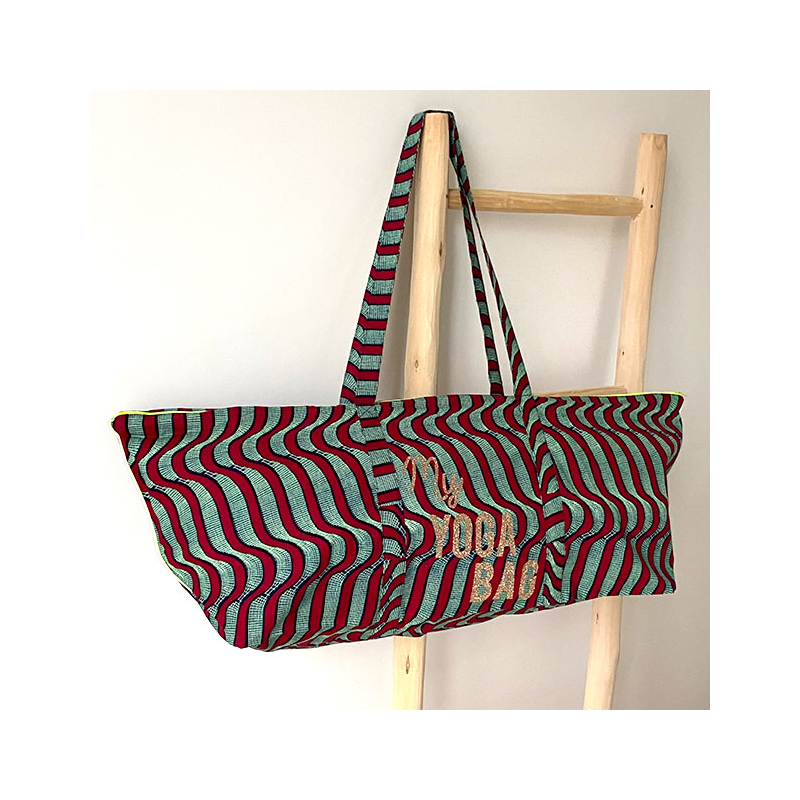 Notre sac tapis de yoga en coton imprimé marine et rouge a été imaginé pour tous les yogis qui ont envie de transporter leur tenue ainsi que leur tapis de yoga dans un sac de sport qui soit stylé !