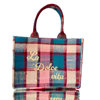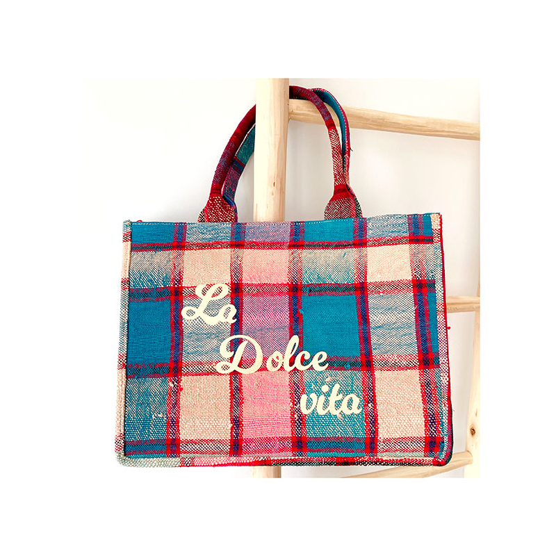 Le cabas Dolce Vita est raffiné et coloré. Dans ces tons bleu canard qu'on adore, son message marqué à chaud doré le rend unique. Une véritable invitation à la douceur ! Confectionné en plaid berbère recyclé il nous permet de donner une seconde vie à ces superbes tissus. A porter à l'épaule ou au bras son format est idéal.