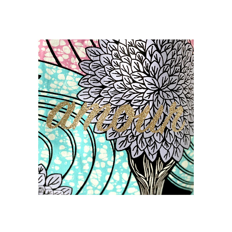 Notre incontournable tote bag en coton wax arbore de beaux motifs sur son imprimé turquoise. Ce sac se distingue par son message "amour" imprimé en glitter, ajoutant une touche scintillante et audacieuse à son design. Réalisé avec amour, ce tote bag offre qualité et une personnalisation étudiée.