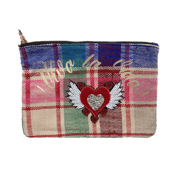 Des trousses à bazar de filles avec le message "Famille je vous aime" à glisser dans son sac à main sans tarder ! Elles contiendront vos essentiels mais également un livre, une tablette ou un magazine.