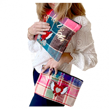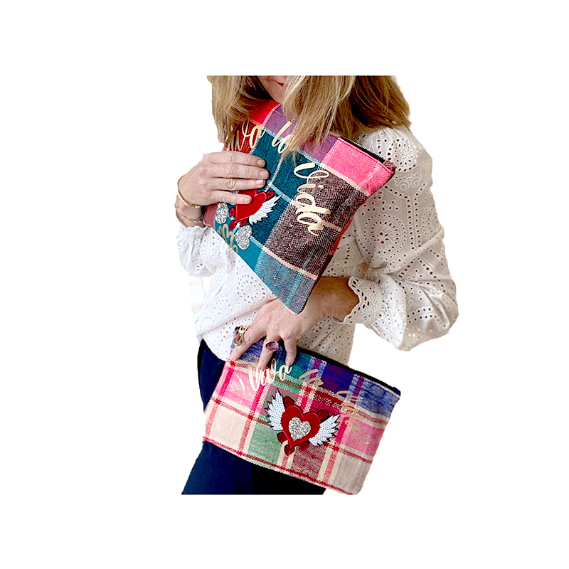 Trousse maquillage "Viva la Vida" en tissu recyclé. Grand format idéal pour ranger vos essentiels beauté : pinceaux, maquillage, accessoires. Chaque pièce est unique, fabriquée à partir de plaids berbères upcyclés et personnalisée à Paris.